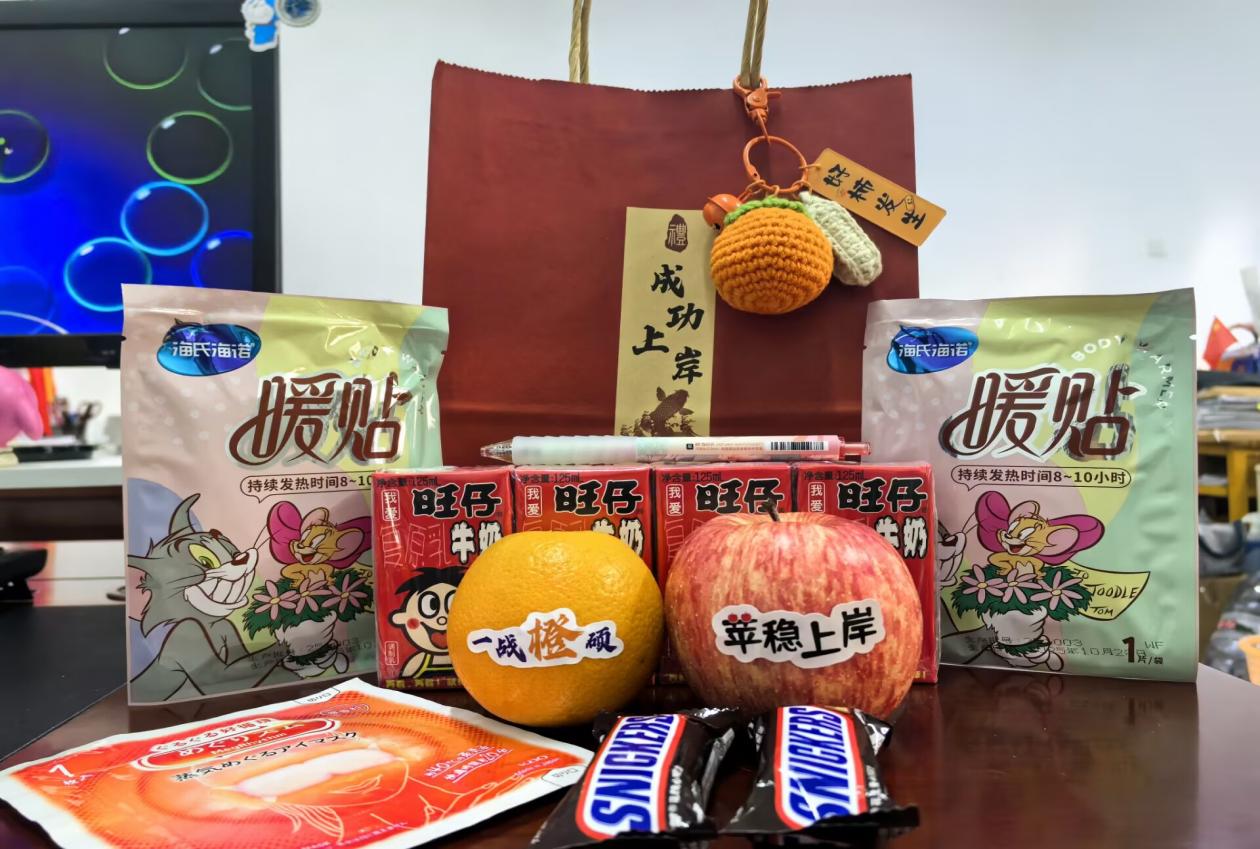 会议尾声,威廉希尔中国官网为每位考研学子送上了精心准备的“考研暖心大礼包”,包含寓意“一战橙硕”、“苹稳上岸”、温暖相伴暖宝贴、旺仔牛奶以及“好柿发生”的钥匙挂件。一份份充满心意的礼物,一句句温暖有力的祝福,让备考学子们深切感受到了威廉希尔中国官网的关怀与牵挂,进一步激发了大家的备考热情与斗志。