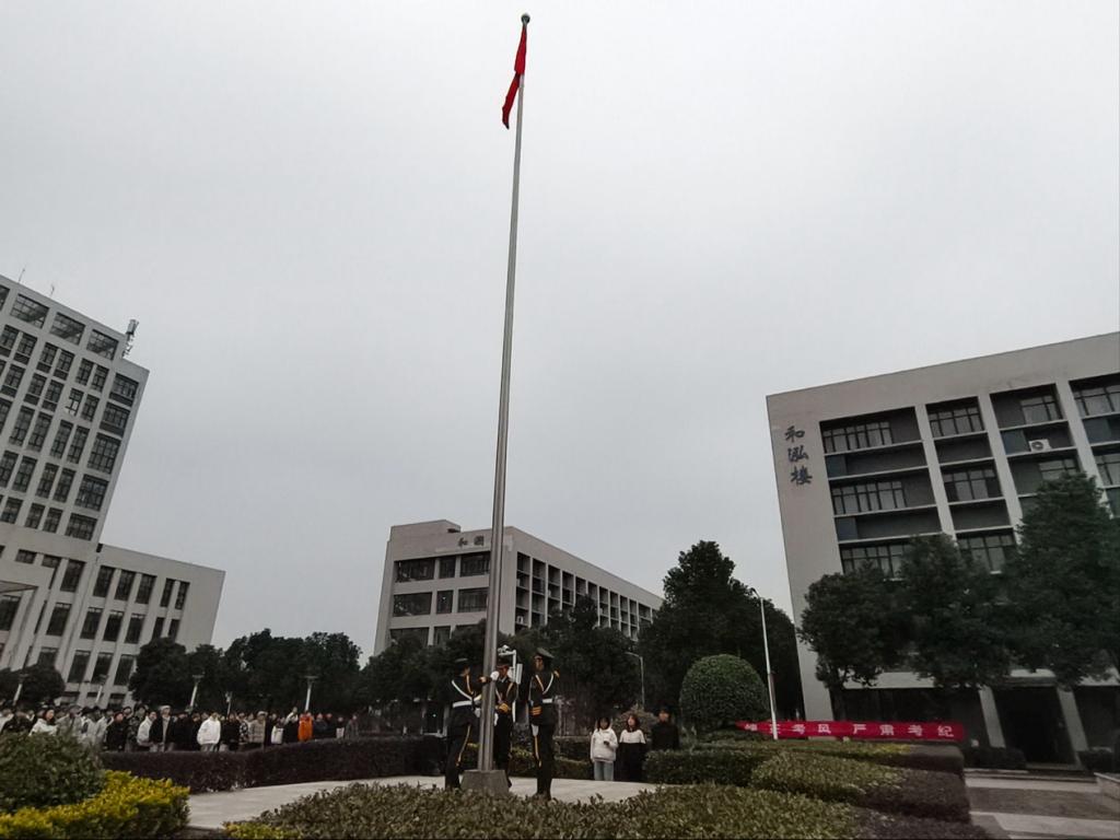 本次升旗仪式由2025级智能机电1班胡琪同学主持。激昂的乐曲声中,国旗护卫队队员们迈着铿锵有力的步伐,护送着鲜艳的五星红旗走向升旗台。他们身姿挺拔、神情肃穆,每一步都尽显青春的朝气与担当。