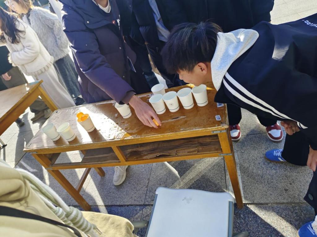 “四渡赤水”游戏中,学生们通过吹气将乒乓球从代表艰难险阻的杯子中吹向胜利的彼岸。这个过程不仅锻炼了他们的耐心和专注力,更让他们深刻体会到,在共青团光辉精神的照耀下,面对困难和挑战时,只有保持冷静、坚持不懈,才能找到解决问题的方法,实现革命理想。