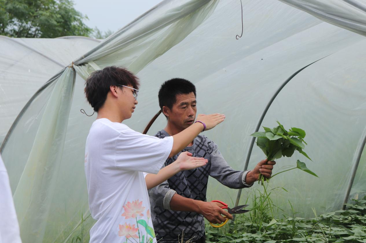 当日下午,队员们还将爱心带到了残疾农户家中。他们不顾烈日骄阳,深入田间地头,帮助农户采摘红薯尖,并进行整理和捆绑,以便农户更好地进行售卖。这份实实在在的举动让农户感动不已,连连表示谢意。通过助农活动,队员们不仅感受到了劳动的艰辛与价值,更深刻体会到“为人民服务”的真谛。