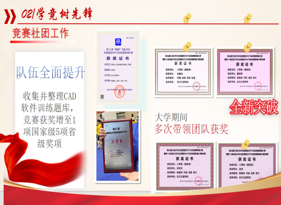 在社团工作中,张素玮践行传帮带精神。在他的带领与帮助下,一批又一批参加学科类竞赛的同学,不仅获得了专业技能上的提高更收获了诸多奖项,丰富了大学的生活。在他的努力下,土木工程类竞赛获奖一次又一次取得新的突破,团队成员也随之不断壮大。