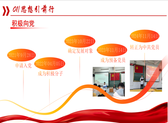 在刚踏入文理校园时,张素玮就向党组织递交了入党申请书。他在大学生活与工作中积极发挥先锋模范带头作用,在活动和竞赛中总是冲在最前线,为团队不断解决技术上的难题。同时,他热心与校内外的志愿服务,深知志愿服务是检验一名党员心系群众,勇于奉献的重要标尺。在向党组织靠拢的过程中,他不断积极主动了解党史和学习党的理论知识,从而提高自己的政治觉悟与思想水平。