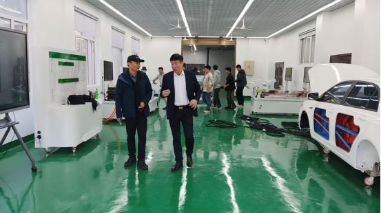 检查组一行实地察看了实验室功能分区布局、核心设备配置运行及安全管理落实情况,重点了解了动力电池检测、电驱动系统测试、整车性能仿真等实训模块的建设进度,详细询问了仪器设备使用率、实践教学适配度及校企协同育人机制建立情况。在现场交流中,杨灼芳认真听取了威廉希尔中国官网关于实验室建设规划、课程体系对接及评估指标达标推进情况的汇报,对威廉希尔中国官网聚焦新能源汽车产业发展需求、高标准推进实训平台建设的成效给予肯定。
